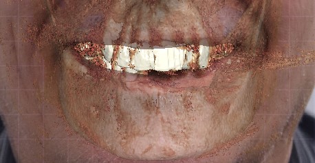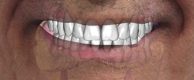 The doctor planned to extract the remaining teeth while preserving the alveolar bone in order to fabricate an FP1-type prosthesis. Following this approach, we virtually extracted the teeth and designed the prosthetic teeth to be supported within the alveoli, preserving the gingival contours from the provisional stage through to the definitive restoration.
